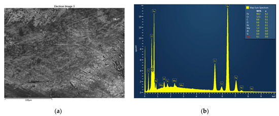 The same analysis performed on the steel ball’s worn surface post-tribological test with CNTs based grease shows lower carbon content (around 6–8%), Figure 8. In the same spectrum, it is worth noting the presence of Molybdenum.