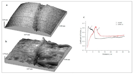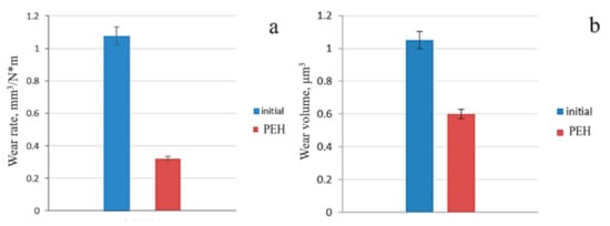 - The PEH improves the tribological properties of steel: the wear rate j of steel 0.34C-1Cr-1Ni-1Mo-Fe is equal to 0.32 mm3/Nm after the PEH; that is, 3.4 times less than the wear rate of the initial steel;