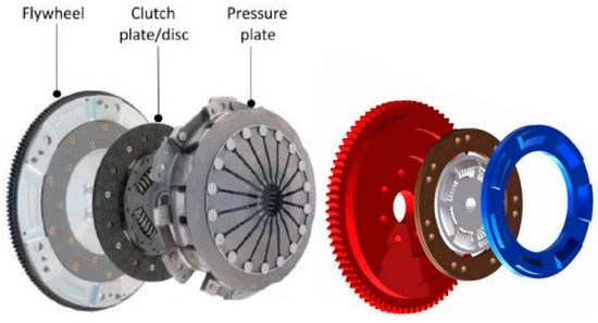 - Lee, C.Y.; Chung, I.S.; Chai, Y.S. 12Finite Element Analysis of an Automobile Clutch System. J. Key Eng. Mater. 2007, 353–358, 2707–2711. [Google Scholar] [CrossRef]