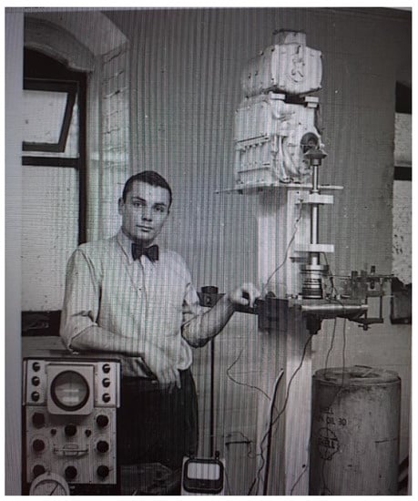 Ramsey Gohar in front of an engine test-rig in 1959 [1].