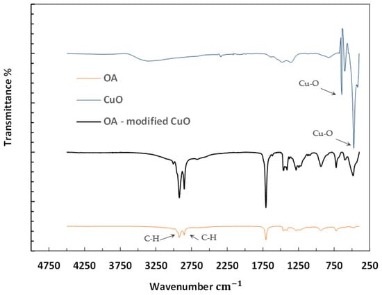 Figure 3. Analysis of (FTIR) spectra for functionalized OA-CuO nanoparticles.