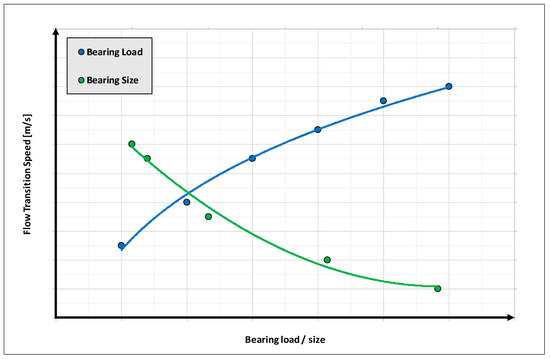 Predicted qualitative influence of the bearing load and the bearing size on the laminar-turbulent transition speed.