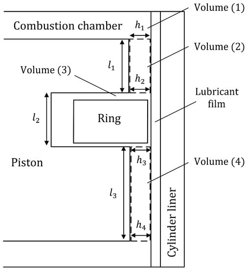 - Richardson, D.E. Comparison of Measured and Theoretical Inter-Ring Gas Pressure on a Diesel Engine; SAE Technical Papers; SAE International: Warrendale, PA, USA, 1996. [Google Scholar]