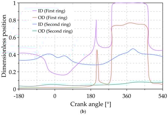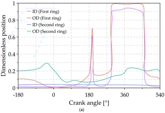 - Lyubarskyy, P.; Bartel, D. 2D CFD-model of the piston assembly in a diesel engine for the analysis of piston ring dynamics, mass transport and friction. Tribol. Int. 2016, 104, 352–368. [Google Scholar] [CrossRef]