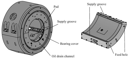 - Hagemann, T.; Schwarze, H. Theoretical and Experimental Analyses of Directly Lubricated Tilting-Pad Journal Bearings with Leading Edge Groove. J. Eng. Gas Turbines Power 2019, 141, 051010. [Google Scholar] [CrossRef]