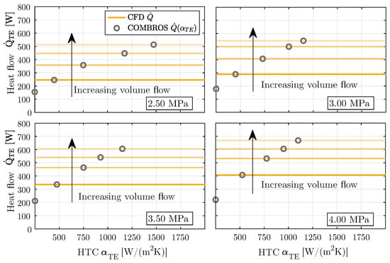 2 K) is assumed and, on the other hand, a HTC determined with the help of computational fluid dynamics (CFD) analysis is considered. The validation based on experimental data shows a considerable improvement of the theoretical results with the variable, but lower HTC.