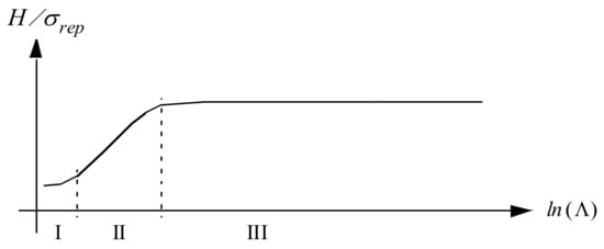 The derivation leading to Equation (9) rests on the similarity of the stress fields at sharp indentation and taking advantage of the analysis of expansion of a pressurized spherical cavity in an elastic-ideally plastic material. The solution to the latter problem (in the context of indentation testing) was originally proposed by Bishop et al. [22] and the effect from plastic strain-hardening is accounted for by the representative stress σrep. It has been shown with the aid of finite element calculations, cf. e.g., Larsson [23], that the constants C1 and C2 in Equation (9) are not strictly independent of the strain-hardening characteristics. However, as the present investigation concerns rigid plastic (level III) indentation this issue will not be dwelled upon further. It should be emphasized that at Λ-values pertinent to the transition between level II and level III indentation Equation (2) (nondimensionalized according to (10)) and Equation (9) obviously yield similar results.
