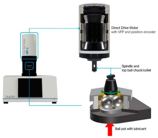 The friction measuring system in the four-ball tester has been extensively described in the US patent US 2017/0176319 A1. Friction torque was measured using a load cell, that was in contact with the moment arm fixed to the ball pot in the four-ball tester. Coefficient of friction was calculated from the measured friction torque and applied load as per ASTM D5183 [