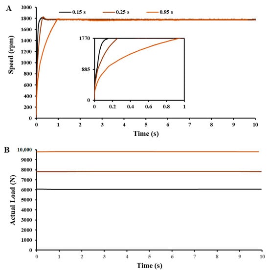 Figure 1). A variable speed direct drive motor without any belt or pulley arrangements was used to control the speed between 300 rpm to 3000 rpm. Speed ramp up time, that is time delay in motor speed to reach 1770 rpm starting from 0 rpm was controlled using the position encoders. Position encoders can precisely identify the angular position of the spindle in the motor. And they were in closed loop with the variable frequency drive system that controlled the flow of current to the motor, and the motor speed. Variable frequency drive ensures that the speed ramp up time is not affected by starting motor torque that is crucial for ASTM D2596. The direct drive motor without any gear box was compatible with peak load of 10,000 N, to sustain maximum torque at zero speed. Safety controls were used to prevent the overflow of current to the motor at the peak torque operating conditions. The labview based WinDucom software was used to set the desired speed ramp up time for each test. In this study we chose speed ramp up time 0.15 s, 0.25 s and 0.95 s, that is the time delay for motor to reach a preset mean speed of 1770 rpm (see