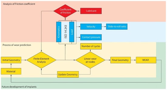 40]. Based on these mathematical approaches, a computational framework utilizing finite element analysis (FEA) for modeling the wear of TKRs was developed. Mell et al. used this approach for wear prediction. Values of the friction coefficient between the two articulating surfaces were set as a mean value of 0.04 [