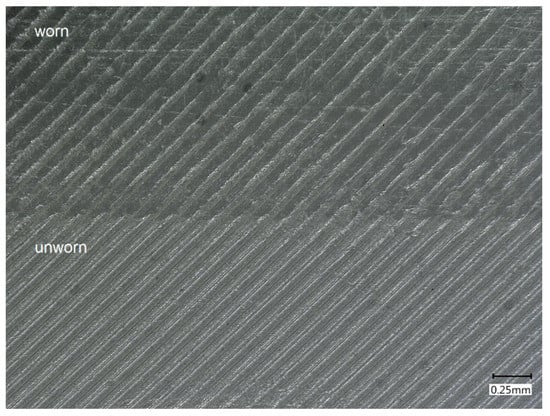 After the test, samples were inspected using a digital microscope (Keyence VHX-6000, Osaka, Japan). In addition, the surface topography of the wheel was analyzed by phase-shifting interferometry (Bruker Contour GT-X, Billerica, MA, USA) to obtain roughness parameters.