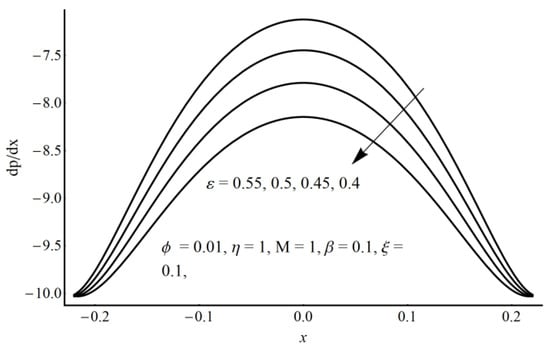 - In the core region, a considerable elevation in the pressure gradient is obtained for the small values of the slippage parameter and the large values of cilia length and eccentricity parameters.