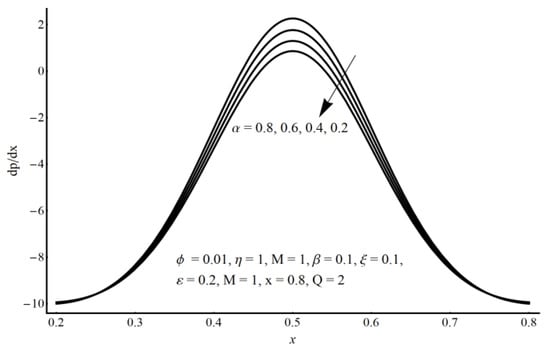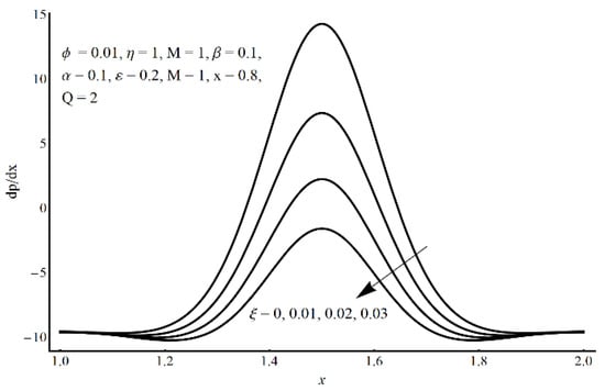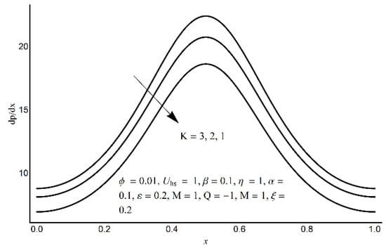 - A more elevated pressure gradient is seen (for large values of electro-osmotic parameter) in the contracted channel zone than in the wider part of the channel.