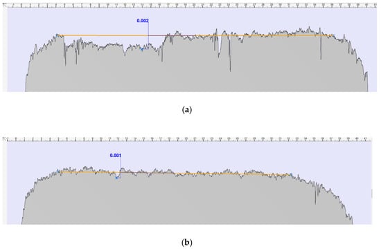 (a) First measurement of the pad profile (mm). (b) Second measurement of the pad profile (mm).