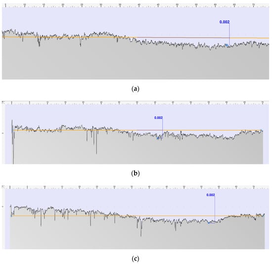 (a) Counterpad profile measured along the direction 1 (mm). (b) Counterpad profile measured along the direction 2 (mm). (c) Counterpad profile measured along the direction 3 (mm).