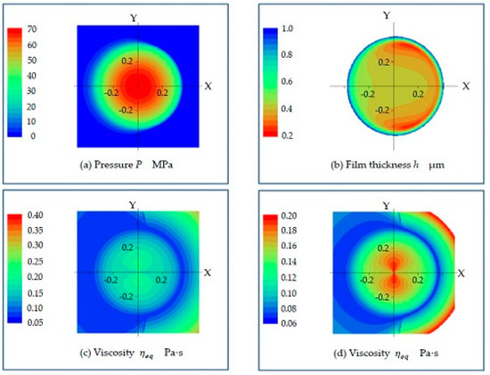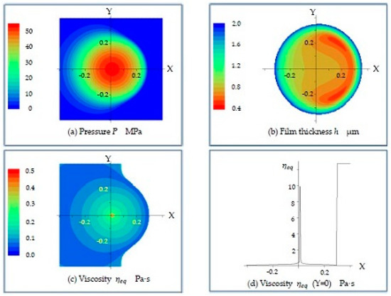 defined by Equation (37) was determined so that Equations (41) and (43) maintain the same form as that of Newtonian flow. Therefore, the EHL calculation procedure for Newtonian flows, such as the method proposed by Venner and Lubrecht [
