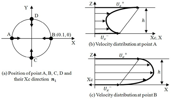 . The local coordinate system, Oc, Xc, and Yc, at a given point depends on the pressure gradient and is determined simultaneously in the process to obtain the pressure distribution. In the Xc and Yc coordinate system, Equations (9) and (10) can be rewritten as follows: