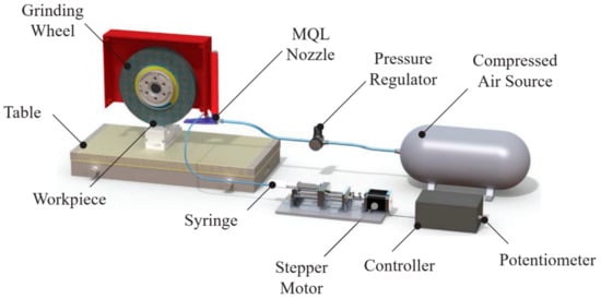 46]. Although solid particles also significantly increase fluid viscosity, this cutting fluid was used in the grinding process through the MQL cooling–lubrication condition. In this condition, tiny fluid droplets are propelled employing compressed air (0.3 MPa) to the cutting zone. Thus, nozzle blocking due to graphene platelets is practically unlikely for this condition. Furthermore, it was observed that the significant increase in viscosity provided better lubrication of the contact region between the grinding wheel and the workpiece, resulting in surfaces with a better surface finish. Huang et al. [