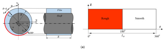 Furthermore, considerably more investigations into bearing performances related to surface roughness are also available. Based on the Reynolds equation, Javorova [12] demonstrated the significance of the surface roughness inclusion for the bearing performance analysis. Using Cristensen’s stochastic roughness theory, Hsu et al. [13] explored the effect of two types of surface roughness directions, namely longitudinal and transversal, under a magnetic field, on the operational performance of bearings. They showed that by promoting longitudinal roughness, the load-carrying capacity can be enhanced. On the other hand, the opposite effect was observed when transverse roughness is employed. For the bearing with slip/no-slip pattern, Kalavathi et al. [14] derived the generalized Reynolds equation by considering roughness nature by employing Christensen’s stochastic theory. They identified that the influence of roughness plays a notable role on the load-carrying capacity. It was confirmed that the load-carrying capacity increases with surface roughness. Later, the effects of surface roughness on the transient behavior of hydrodynamic journal bearings during startup were explored by Cui et al. [15]. They found that the longitudinal surface configuration has a quite significant effect on reducing the hydrodynamic force. Al-Samieh [16] explored the effect of surface roughness in sinusoidal waviness terms for Newtonian and non-Newtonian lubricants. It was observed that as the amplitude of the waviness increases, more fluctuations of pressure distribution occur. Later, Tauviqirrahman et al. [17] revealed that hydrodynamic pressure and load-carrying capacity decrease with surface roughness. In their case, it was assumed that the roughness was applied to the whole bushing surface. Recently, Gu et al. [18] reported that the surface roughness should be taken into account in the optimization of the surface texture. In general, as well as the surface texture, the surface roughness has a significant role in altering the tribological performance of the journal bearing.