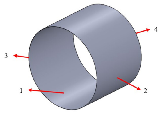 Boundary condition of the computational domain: 1—moving wall, 2—stationary wall, 3–inlet, 4—outlet.