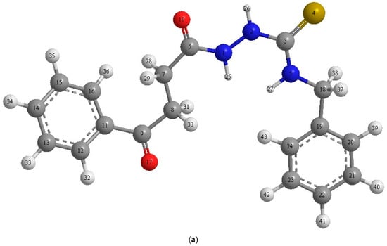 To calculate the ground-state geometries, Gaussian 03, Revision C.01 was optimized to a local minimum without symmetry restrictions using the valence and polarization basis set (6-31G++(d,p)). A combination of the Becke three-parameter hybrid (B3) exchange functional and the Lee–Yang–Parr (LYP) correlation functional (B3LYP), a version of the (DFT) method was used in gas phase to determine all optimized geometries, HOMO energies (EHOMO), LUMO energies (ELUMO) and physical properties (for the molecules in this study. The HOMO, LUMO, ΔE, η, σ, χ and ΔN were calculated using Equations (3)–(7) [,].