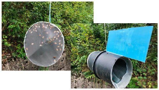 - Rice, K.B.; Morrison, W.R., III; Short, B.D.; Acebes-Doria, A.; Bergh, J.C.; Leskey, T.C. Improved trap designs and retention mechanisms for Halyomorpha halys (Hemiptera: Pentatomidae). J. Econ. Entomol. 2018, 111, 2136–2142. [Google Scholar] [CrossRef] [PubMed]