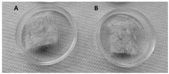 Samples of commercial wool panel (A) intact and (B) damaged on the surface by the action of clothes moth larvae.