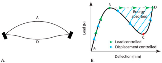 - Bazzucchi, F.; Manuello, A.; Carpinteri, A. Interaction between snap-through and Eulerian instability in shallow structures. Int. J. Non Linear Mech. 2017, 88, 11–20. [Google Scholar] [CrossRef]