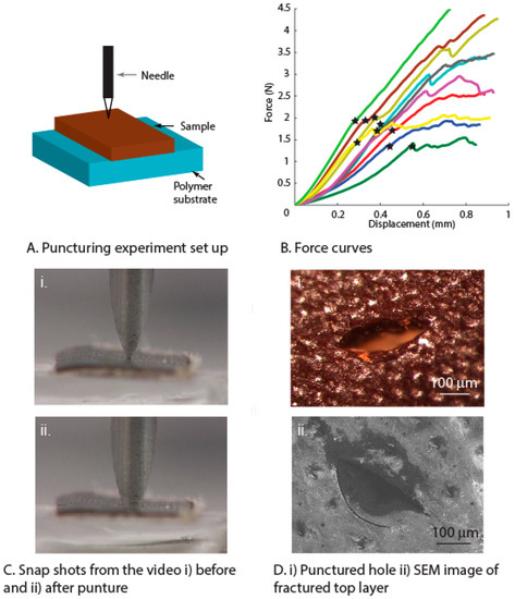 - Zhu, D.; Szewciw, L.; Vernerey, F.; Barthelat, F. Puncture resistance of the scaled skin from striped bass: Collective mechanisms and inspiration for new flexible armor designs. J. Mech. Behav. Biomed. Mater. 2013, 24, 30–40. [Google Scholar] [CrossRef] [PubMed]