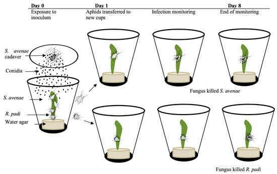 Our aim was to tackle this issue and to study the virulence of the two entomophthoralean fungi P. neoaphidis and E. planchoniana (both produced in S. avenae) against the two aphid species S. avenae and R. padi when exposed to the same conidial exposure. Our hypothesis was that the virulence against conspecific and heterospecific hosts differs, and we predicted a higher virulence against the conspecific host.