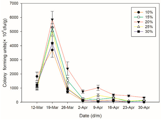 2.6. Colonization of Soil by Beauveria bassiana under Different Soil Moisture Conditions