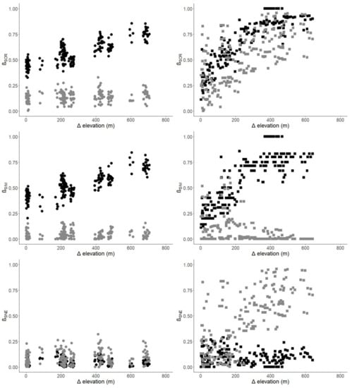 - Baselga, A. Partitioning the turnover and nestedness components of beta diversity. Global Ecol. Biogeogr. 2010, 19, 134–143. [Google Scholar] [CrossRef]