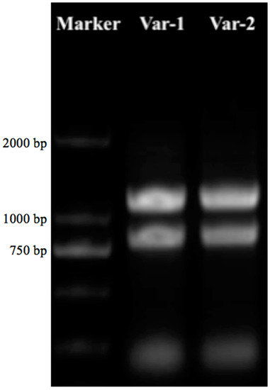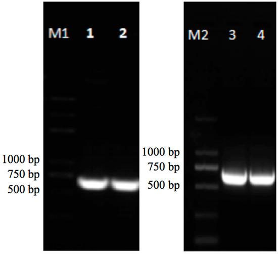Two of the selected candidate genes (Msti-94 and Msti-16) were successfully cloned using specific primers of Msti-94 (5′GGATCCATGAAGCATCTTTTATCACTA3′) and Msti-16 (5′GGATCCATGAAAACCTCACTCTTAGC3′) on two selected verities of alfalfa (Figure 3). Msti-94 was 651 bp and encoded 216 amino acids, with a predicted protein weight of 23.5 kDa and a pI value of 6.91. Similarly, Msti-16 was 612 bp and encoded 203 amino acids, with a predicted protein weight of 22.2 kDa and a pI value of 9.06. The sequence homology with Medicago truncatula L. (barrel medick) trypsin inhibitors reported in GenBank was over 95% (Table 6). Although Msti-64, Msti-86, and Msti-14 were also significant and had potentially vital roles, they were still omitted from further analysis.