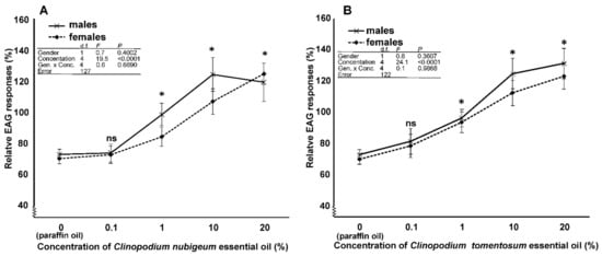 - Bedini, S.; Flamini, G.; Cosci, F.; Ascrizzi, R.; Echeverria, M.C.; Gomez, E.V.; Guidi, L.; Landi, M.; Lucchi, A.; Conti, B. Toxicity and oviposition deterrence of essential oils of Clinopodium nubigenum and Lavandula angustifolia against the myiasis-inducing blowfly Lucilia sericata. PLoS ONE 2019, 14, e0212576. [Google Scholar] [CrossRef] [PubMed]