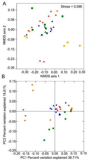 - Langille, M.G.; Zaneveld, J.; Caporaso, J.G.; McDonald, D.; Knights, D.; Reyes, J.A.; Clemente, J.C.; Burkepile, D.E.; Thurber, R.L.V.; Knight, R. Predictive functional profiling of microbial communities using 16S rRNA marker gene sequences. Nat. Biotechnol. 2013, 31, 814–821. [Google Scholar] [CrossRef] [PubMed]