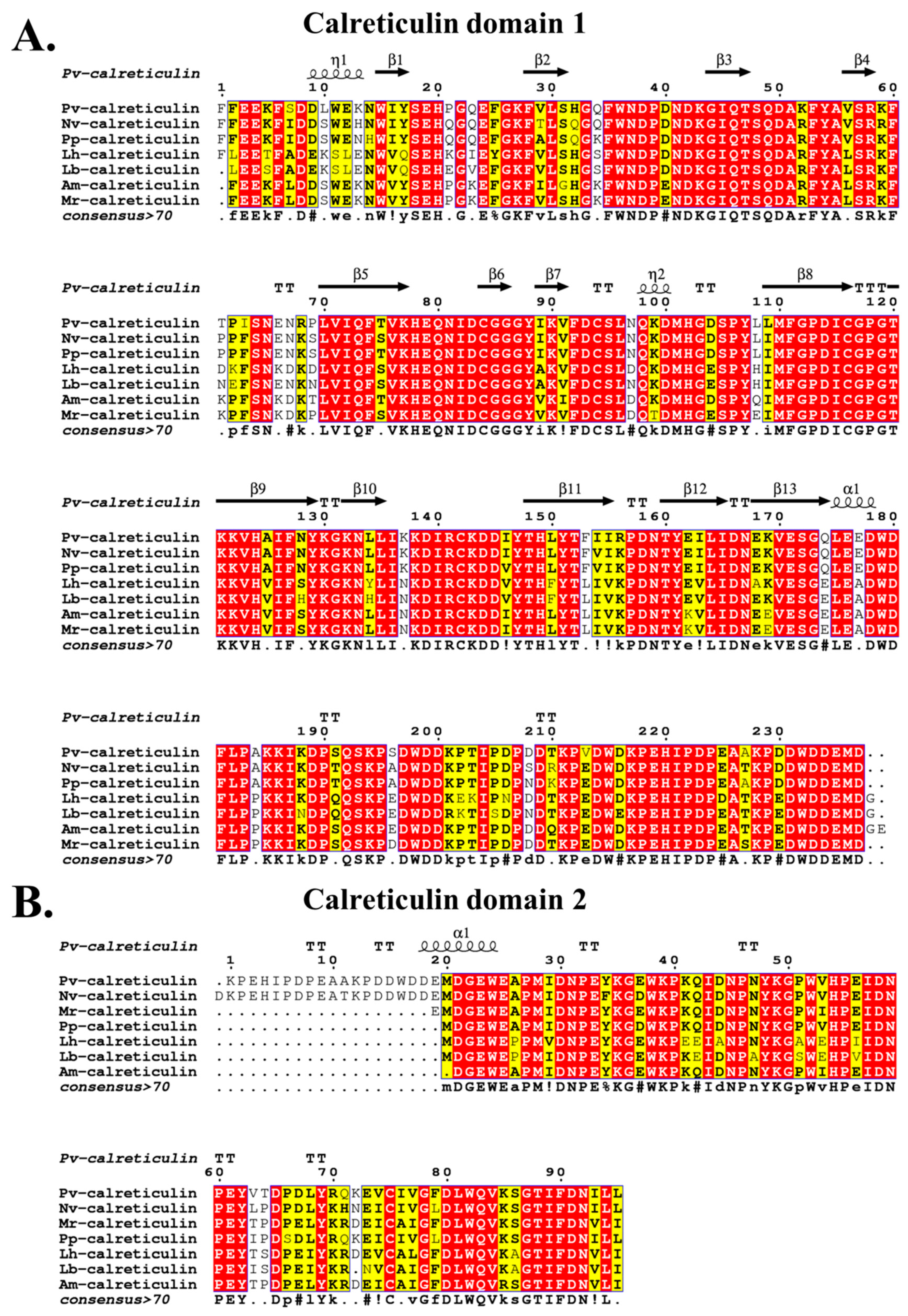 - Zhang, G.; Schmidt, O.; Asgari, S. A calreticulin-like protein from endoparasitoid venom fluid is involved in host hemocyte inactivation. Dev. Comp. Immunol. 2006, 30, 756–764. [Google Scholar] [CrossRef] [PubMed]