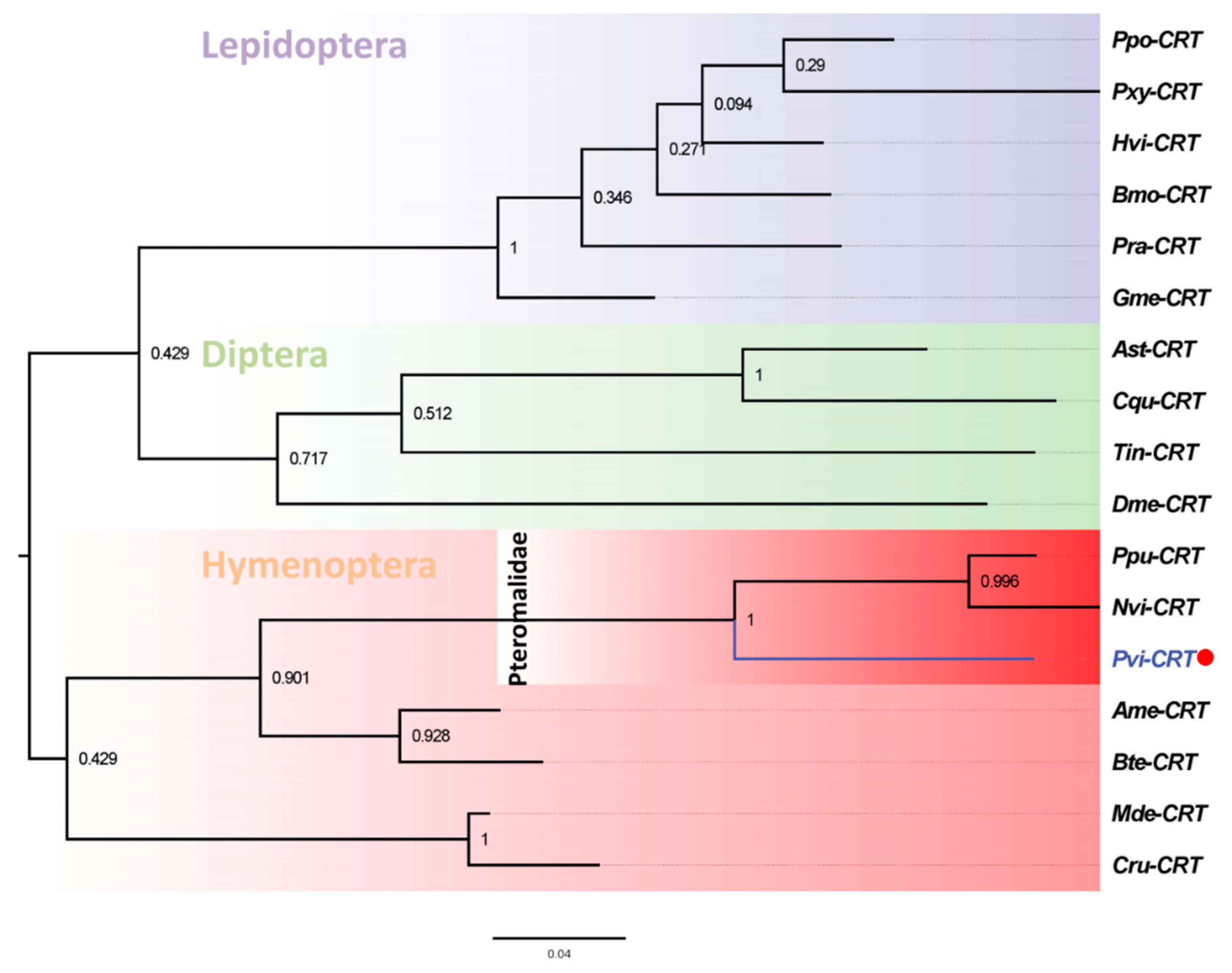 - Cha, W.H.; Kim, Y.; Lee, D.-W. Calreticulin in Cotesia plutellae suppresses immune response of Plutella xylostella (L.). J. Asia Pac. Entomol. 2015, 18, 27–31. [Google Scholar] [CrossRef]
