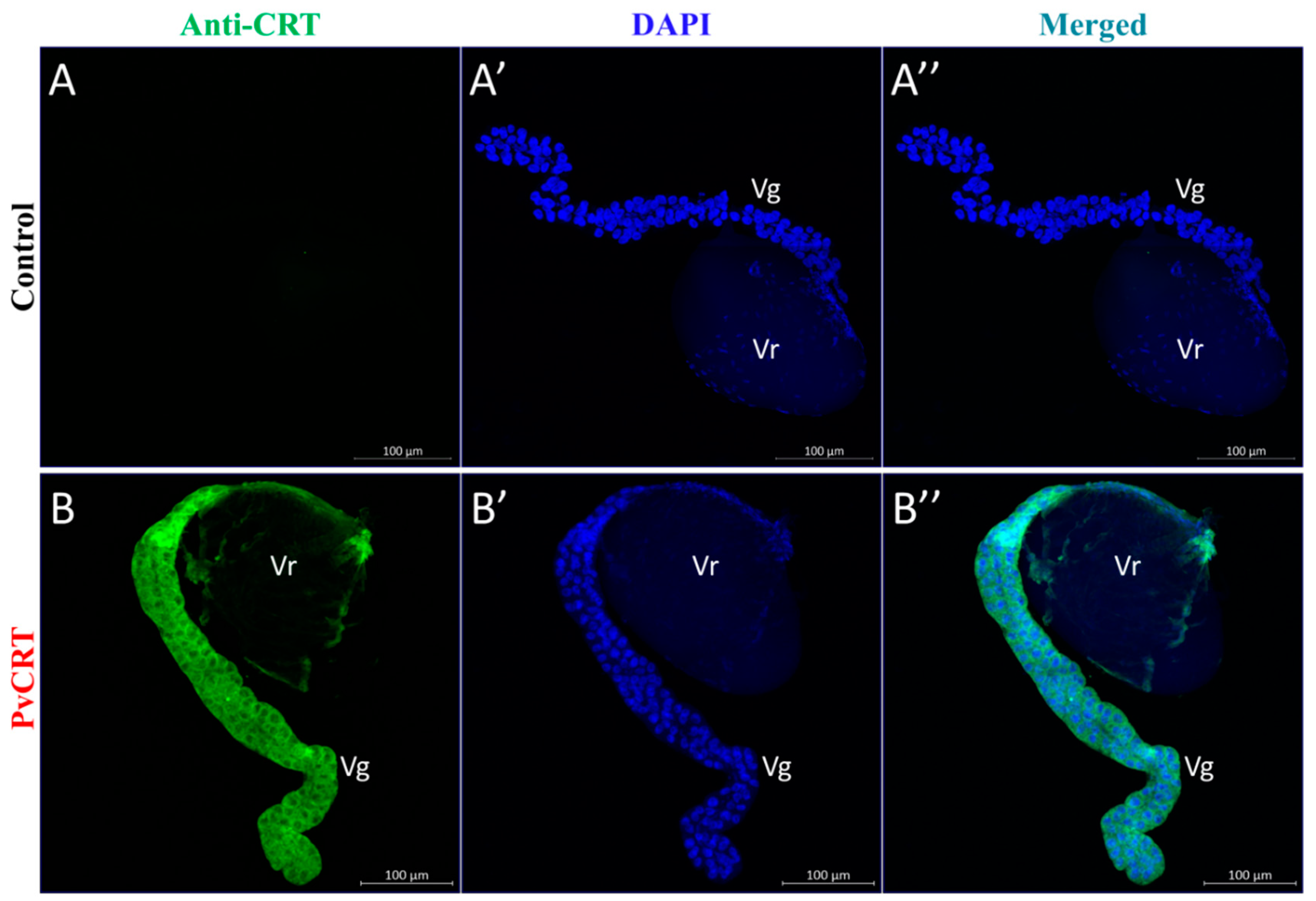 3.4. Immunohistochemical Visualization of PvCRT in Venom Apparatus