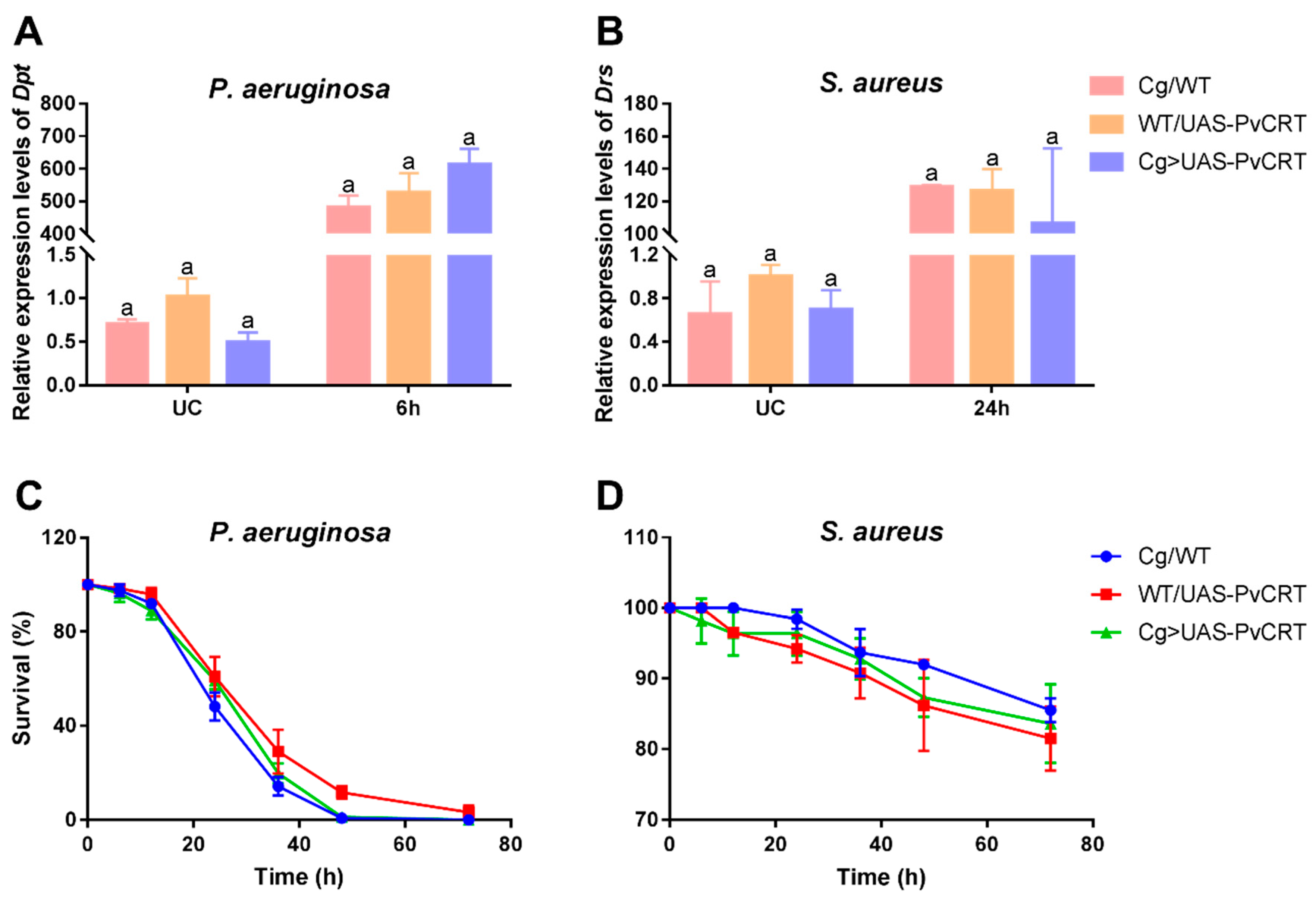 3.7. The Roles of PvCRT in Antimicrobial Immunity of the Host
