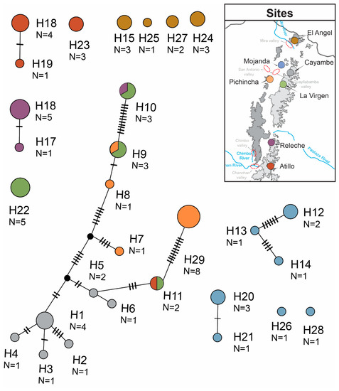 These geological and paleoclimatical events have influenced tropical alpine ecosystems, as well as the distributions and genetic diversity of multiple evolutionary lineages that inhabit the tropical Andes, leading to high numbers of endemic species [3,9,10]. During interglacial fluctuations many suitable habitats moved from the mountain slopes into the inter-Andean valleys [5,11,12,13], sometimes allowing species to exchange genetic material between populations that were usually separated by elevation [5,14], or, alternately, driving the fragmentation of species distributions [5,13,15,16].