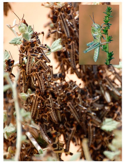 - Zhang, L.; Lecoq, M.; Latchininsky, A.; Hunter, D. Locust and Grasshopper Management. Annu. Rev. Entomol. 2019, 64, 15–34. [Google Scholar] [CrossRef]