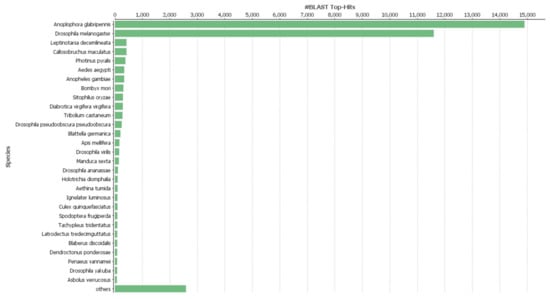 Figure 1. Blast Top hit species distribution match of Psacothea hilaris in Arthropoda phylum.
