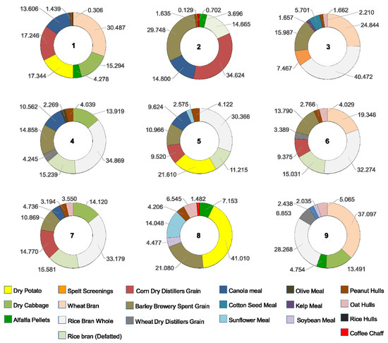 - National Research Council (NRC). United States-Canadian Tables of Feed Composition: Nutritional Data for United States and Canadian Feeds, 3rd ed.; National Academy Press: Washington, DC, USA, 1982; Available online: http://nap.edu/1713 (accessed on 29 August 2019).