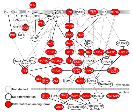 - Surachetpong, W.; Singh, N.; Cheung, K.W.; Luckhart, S. MAPK ERK signaling regulates the TGF-beta1-dependent mosquito response to Plasmodium falciparum. PLoS Pathog 2009, 5, e1000366. [Google Scholar] [CrossRef]