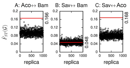 - Excoffier, L.; Hofer, T.; Foll, M. Detecting loci under selection in a hierarchically structured population. Heredity 2009, 103, 285–298. [Google Scholar] [CrossRef] [PubMed]