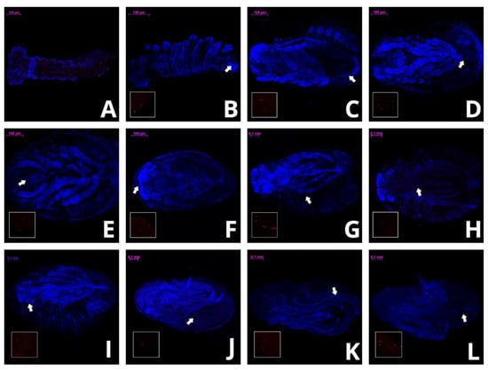 - Koštál, V.; Šimůnková, P.; Kobelková, A.; Shimada, K. Cell cycle arrest as a hallmark of insect diapause: Changes in gene transcription during diapause induction in the drosophilid fly, Chymomyza costata. Insect Biochem. Molec. Biol. 2009, 39, 875–883. [Google Scholar] [CrossRef]