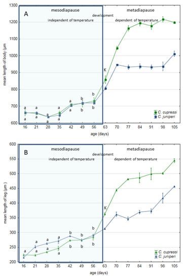 Durak, R.; Dampc, J.; Dampc, J.; Bartoszewski, S.; Michalik, A. Uninterrupted Development of Two Aphid Species Belonging to Cinara Genus during Winter Diapause. Insects 2020, 11, 150. https://doi.org/10.3390/insects11030150