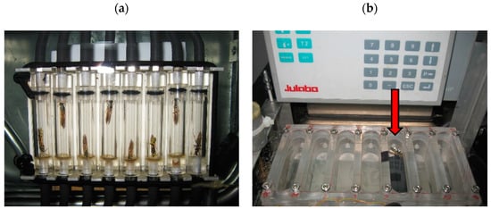 - Lake, S.L.; MacMillan, H.A.; Williams, C.M.; Sinclair, J.B. Static and dynamic approaches yield similar estimates of the thermal sensitivity of insect metabolism. J. Insect. Physiol. 2013, 59, 761–766. [Google Scholar] [CrossRef]