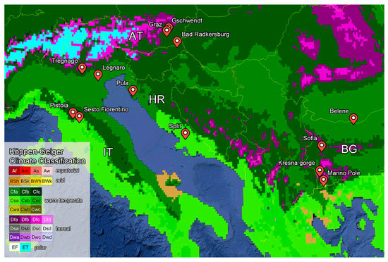 | Kresna gorge (BG) - Cfa | 41.783/23.155 | 3.6 ± 0.6 | −3.4 ± 1.6 | 2 | 3.6 ± 1 | 43.6 ± 0.6 | 25 | 47.0 | 16.3 | −2.6 | |