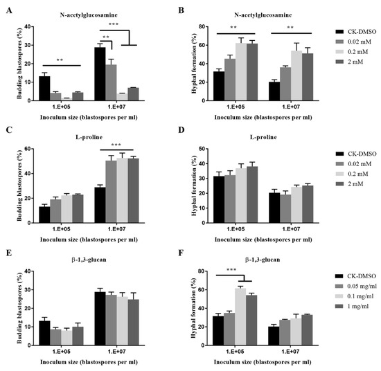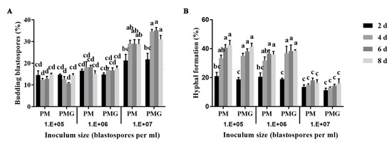 2.3. Effects of Fungal Inoculum Density on the Blastospores-to-Hyphae Transition